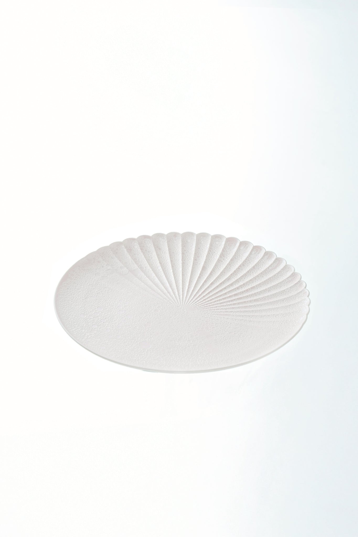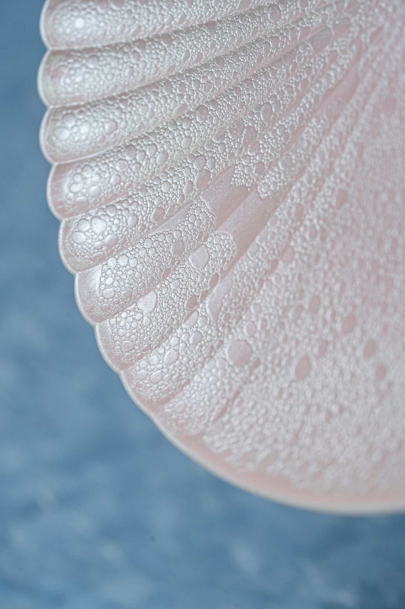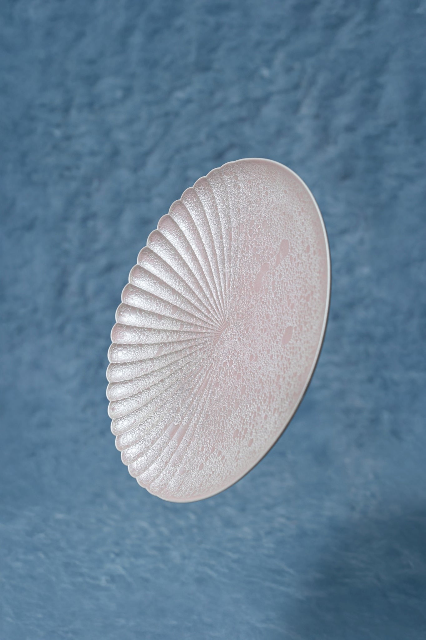 お皿の半分が菊割の形状になっており、立体感のある泡とピンクパールの釉薬表現が柔らかな高級感を演出します。